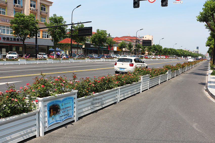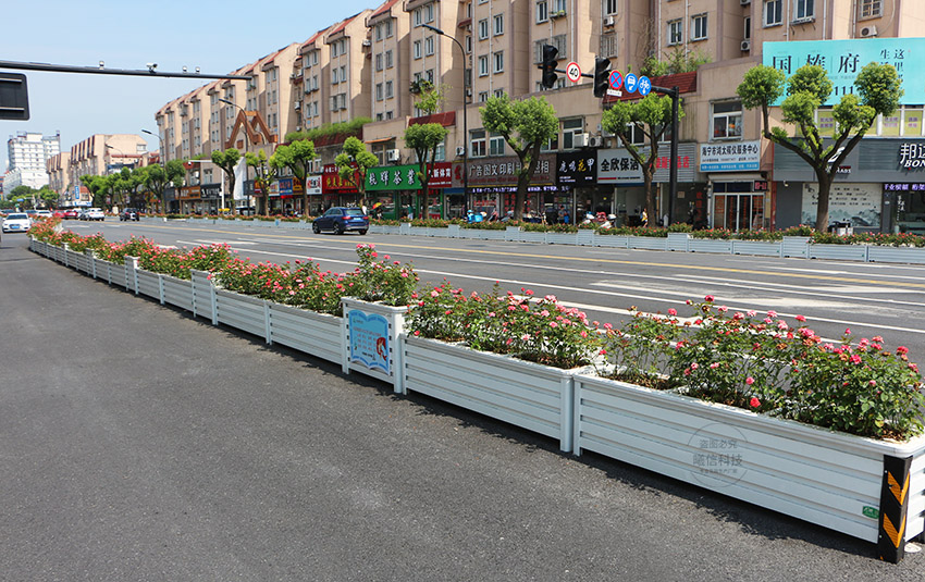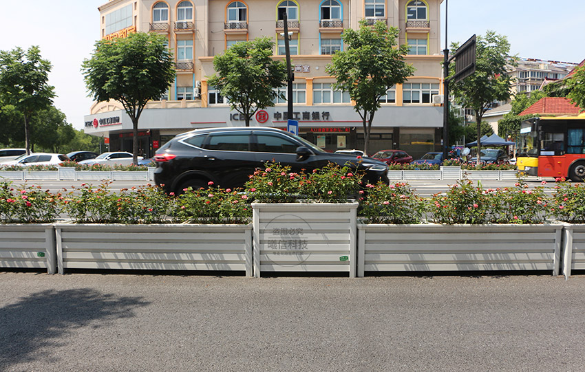 隔離帶花箱由花箱與花箱連成,花箱和花箱沒有固定在一起,而是擺放在一起,這樣運輸方便,后期更換也方便。